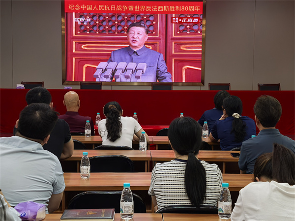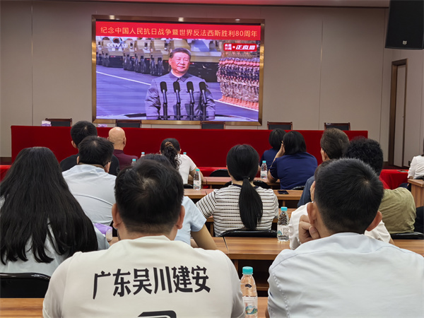 9月3日上午,公司總部全體員工在公司禮堂集中觀看紀(jì)念中國(guó)人民抗日戰(zhàn)爭(zhēng)暨世界反法西斯戰(zhàn)爭(zhēng)勝利80周年大會(huì)直播。