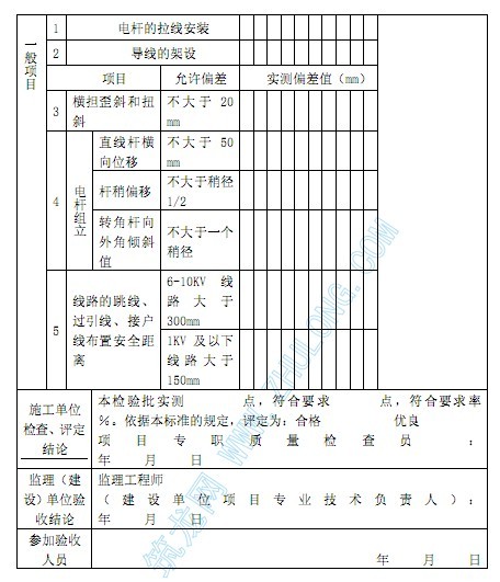 基礎(chǔ)。 “架空線路安裝”按供電區(qū)段劃分檢驗(yàn)批; “桿上電氣設(shè)備安裝”按供電區(qū)段和庭